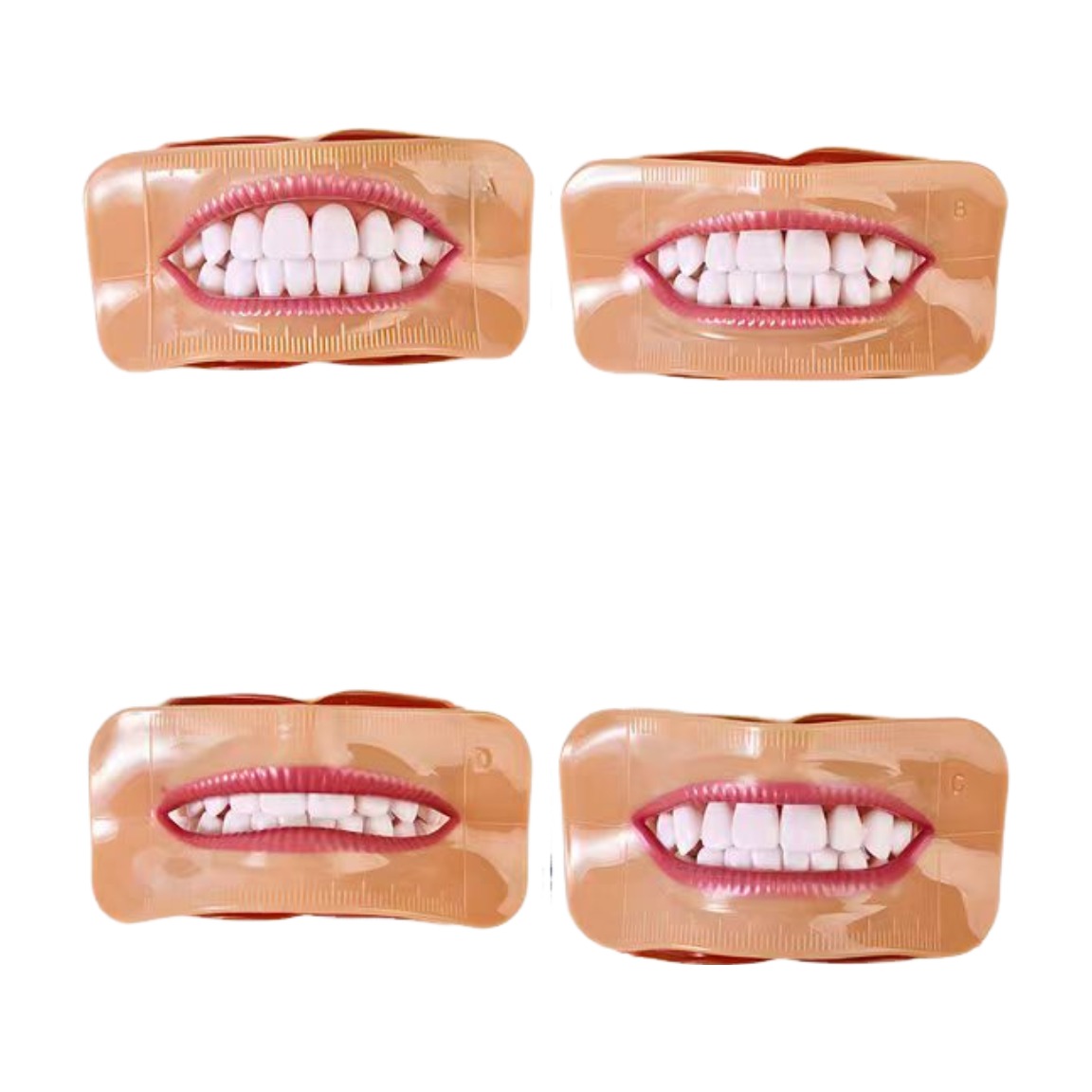 This high-precision set of denture teeth arrangement guides consists of four distinct anatomical profiles (A, B, C, and D) to accommodate various patient lip contours.