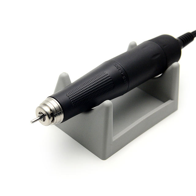 This brushless micromotor features three touch keys with indicator lights, allowing the technician to control the micromotor’s operation: start/stop, continuous or reverse rotation, and speed adjustment via a knob or foot pedal.