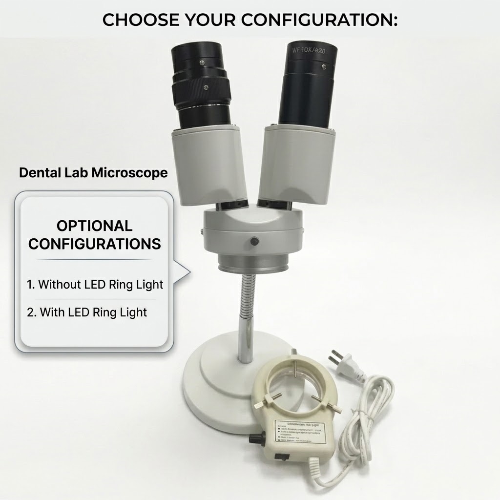 Available with or without an LED ring light to ensure perfect clarity for every prosthetic task.