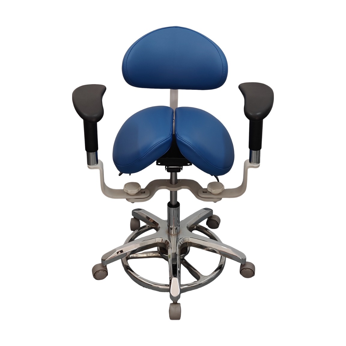 This premium dental stool is engineered to provide clinicians with superior ergonomic stability during long procedures. The contoured saddle seat promotes a healthy spinal alignment and reduces pressure on the hip joints. Its specialized double armrests offer essential support to the forearms, significantly minimizing neck and shoulder fatigue. This stool is a vital addition to any modern dental operatory, ensuring both comfort and precision for the entire dental team.