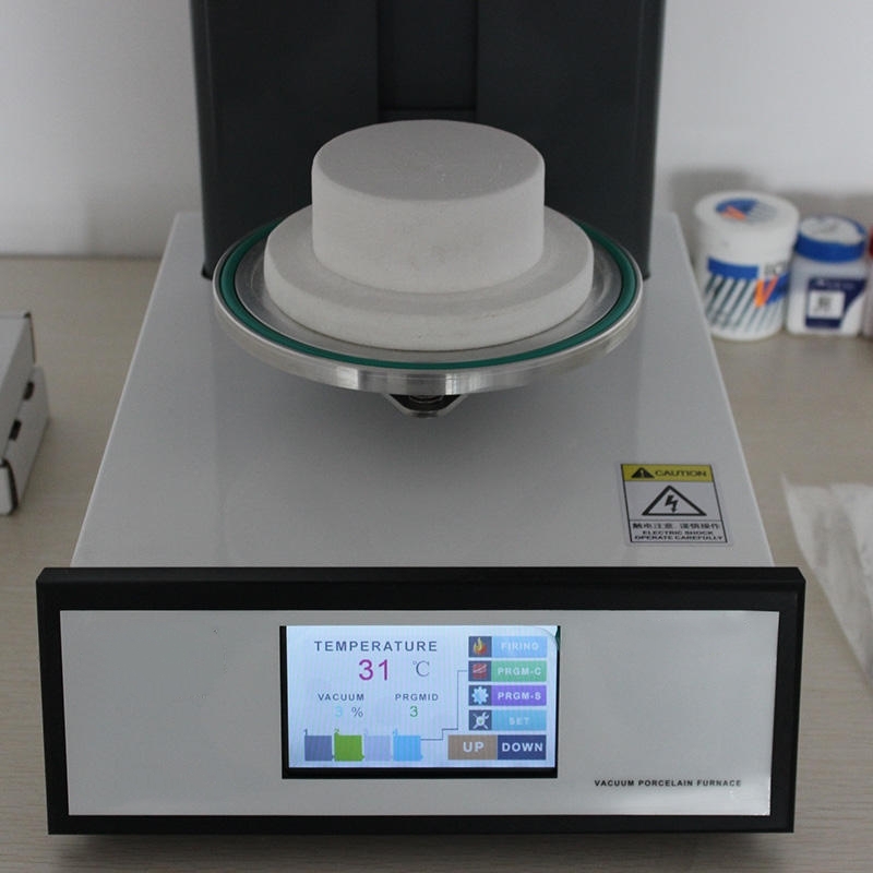 This Vacuum Porcelain Furnace is a laboratory-grade ceramic firing unit engineered for the precise sintering and glazing of fixed prosthetic restorations.