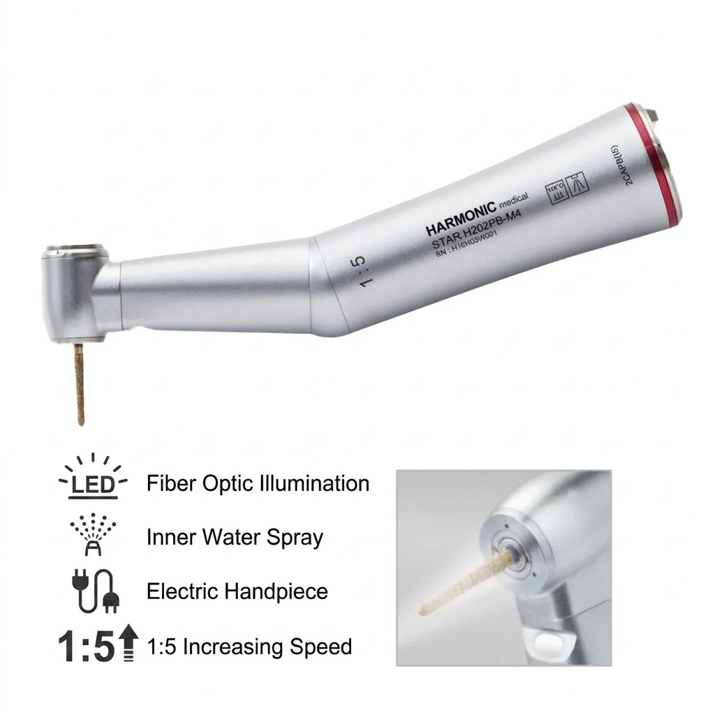 | Handpiece Compatibility | E-type (1:1, 1:5) | Offers the ability to teach both high-speed (simulated by 1:5) and low-speed (1:1) prosthetic techniques using a single motor base. |