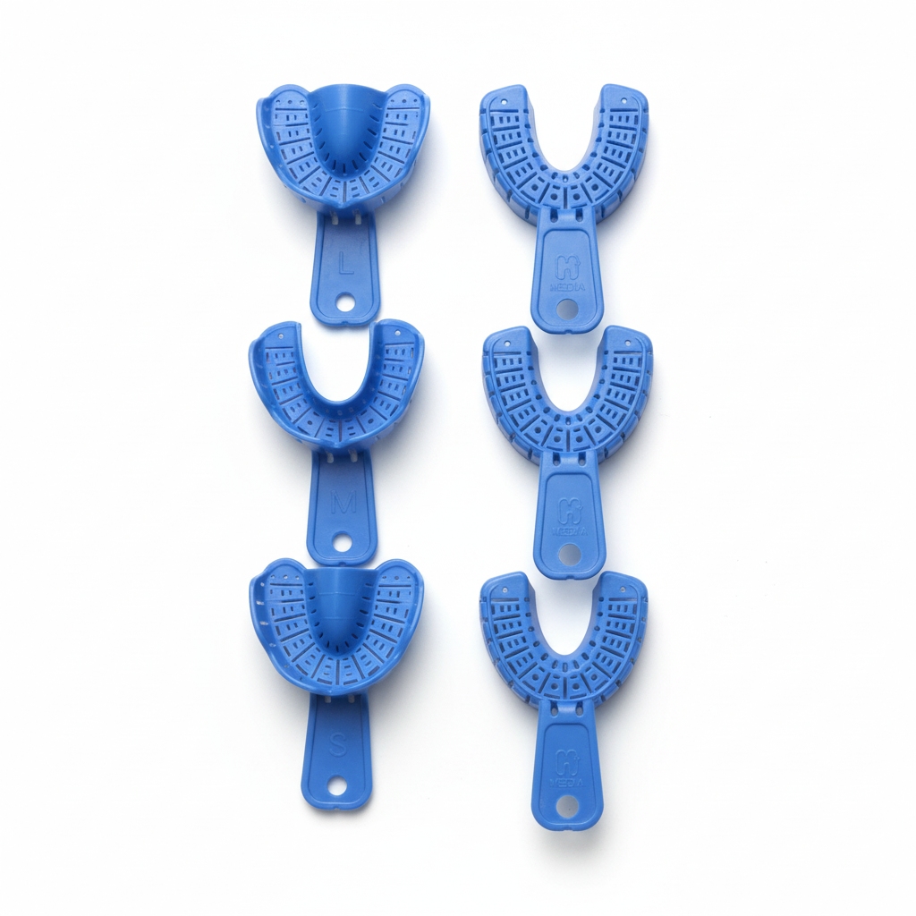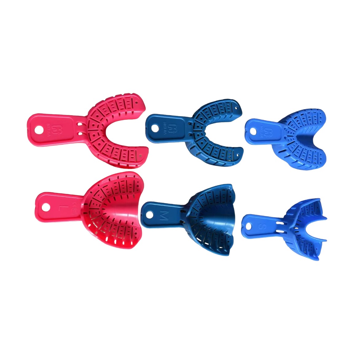 The anatomically contoured trays feature optimal perforation patterns to ensure adequate retention of impression materials while preventing material displacement during intraoral placement.