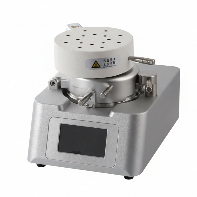 3. Open the film clamp ring, place a 125mm circular thermoplastic sheet inside, and tighten the screws to secure it.