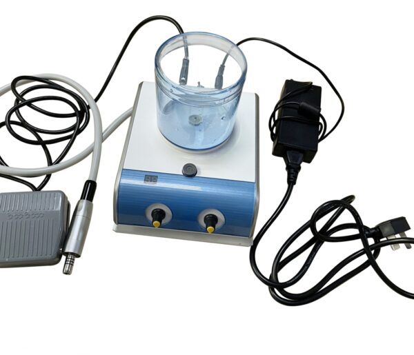 The portable dental unit adopts an E type of motor, it can connect the 1:5 increasing speed electric handpiece and 1:1 contra-angle handpiece.